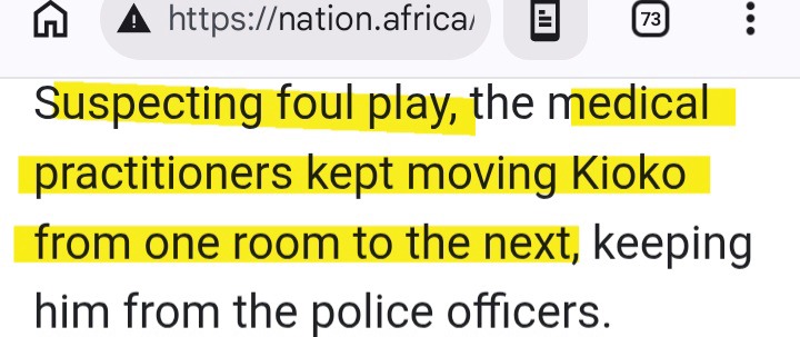Kioko was eventually taken to the theatre after his family managed to raise funds for treatment. He later regained consciousness the following day.